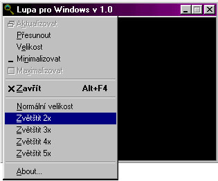 This program is a classic magnifying glass that zooms the area around the cursor with the ability to adjust the size, zoom from 1x to 5x. It is not installed.