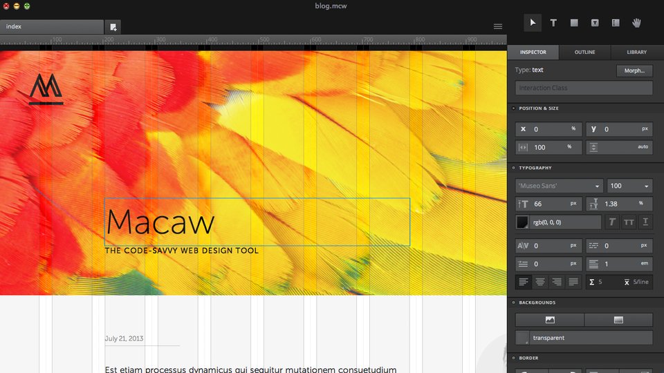 Macaw is an extremely simple program and thanks to the perfectly and clearly designed user interface, a person can create a visual style of the website, which can help him a lot in further processing or creation in more professional programs that are already charged. This perfectly records to tell the public that Macaw is completely free, which will attract quite a lot of new users who will want to either just try the program or start actively using it.
