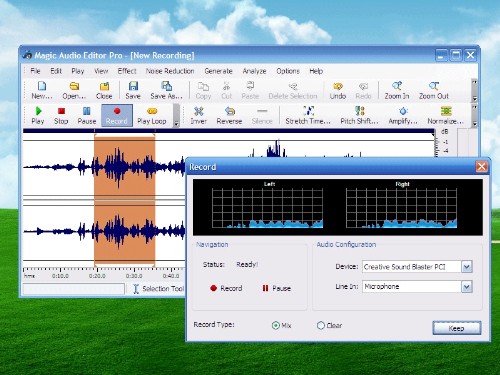 Magic Audio Editor pro is an excellent digital audio editor with an intuitive user interface. It's a great program serving as a home studio for recording and editing audio and mp3 files. This editor includes many different audio effects, filters and a tool to convert audio to other formats. MP3, WMA, WAV, Ogg Vorbis, VOX and audio CD formats are supported.