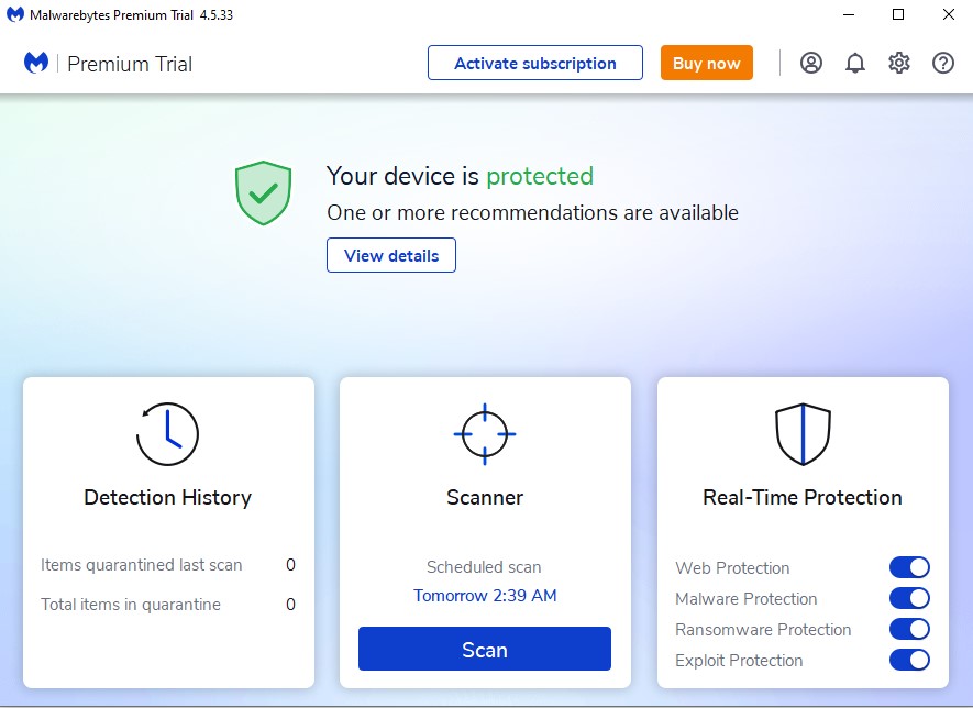 Malwarebytes Anti-Malware is a great tool for identifying and removing malware (a computer program designed to infiltrate or damage a computer system).