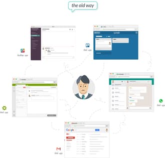 It features a unified tabbed environment that allows you to access applications such as Asana, Basecamp, Bitbucket, Confluence, Evernote, Freshdesk, GitHub, Gitter, Gmail, Google Calendar, Google Drive, Hangouts, Helpscout, HipChat, Hubspot, Inbox, Intercom, Jira, Linkedin, Messenger, Outlook, Product Hunt, Skype, Slack, Telegram, Todoist, Trello, Twitter, Whatsapp, or even Wunderlist.