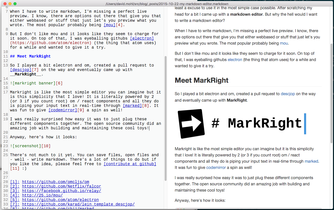 DownloadMarkRight is a minimalist tool that is used to format text using Markdown syntax. The program is written in clojurescript, so you must first check that the Clojure and Leiningen components necessary for the application to run are installed on your system. The tool allows you to preview a text document in real time.