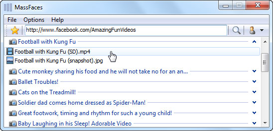 MassFaces is a user-friendly software that helps you download videos from your Timeline to your Facebook friends' Timeline.