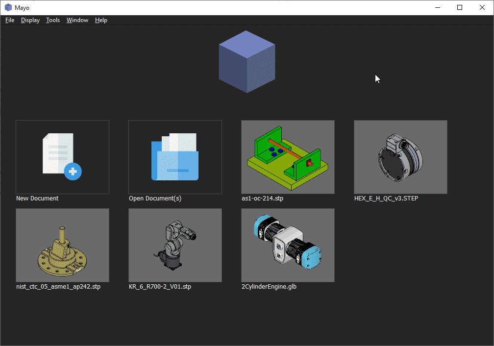 Mayo is an open source CAD file viewer supporting KROK, IGES, OpenCascade BREP, OBJ, glTF, STL, VRML and AMF formats. It also allows file conversion between these formats. It also displays the tree structure of the 3D file contents and object properties.