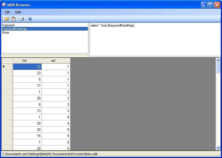 MdbBrowser is a program for people who do not have Microsoft Office Access installed and want to see the contents of an Access database (MDB files) or run custom queries. It can be linked to the MDB extension so that the database could be opened by double clicking in Windows OS Explorer, drag and drop works too.