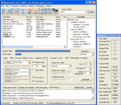 MediaCoder is a universal multimedia file converter with the most popular audio/video codecs integrated.