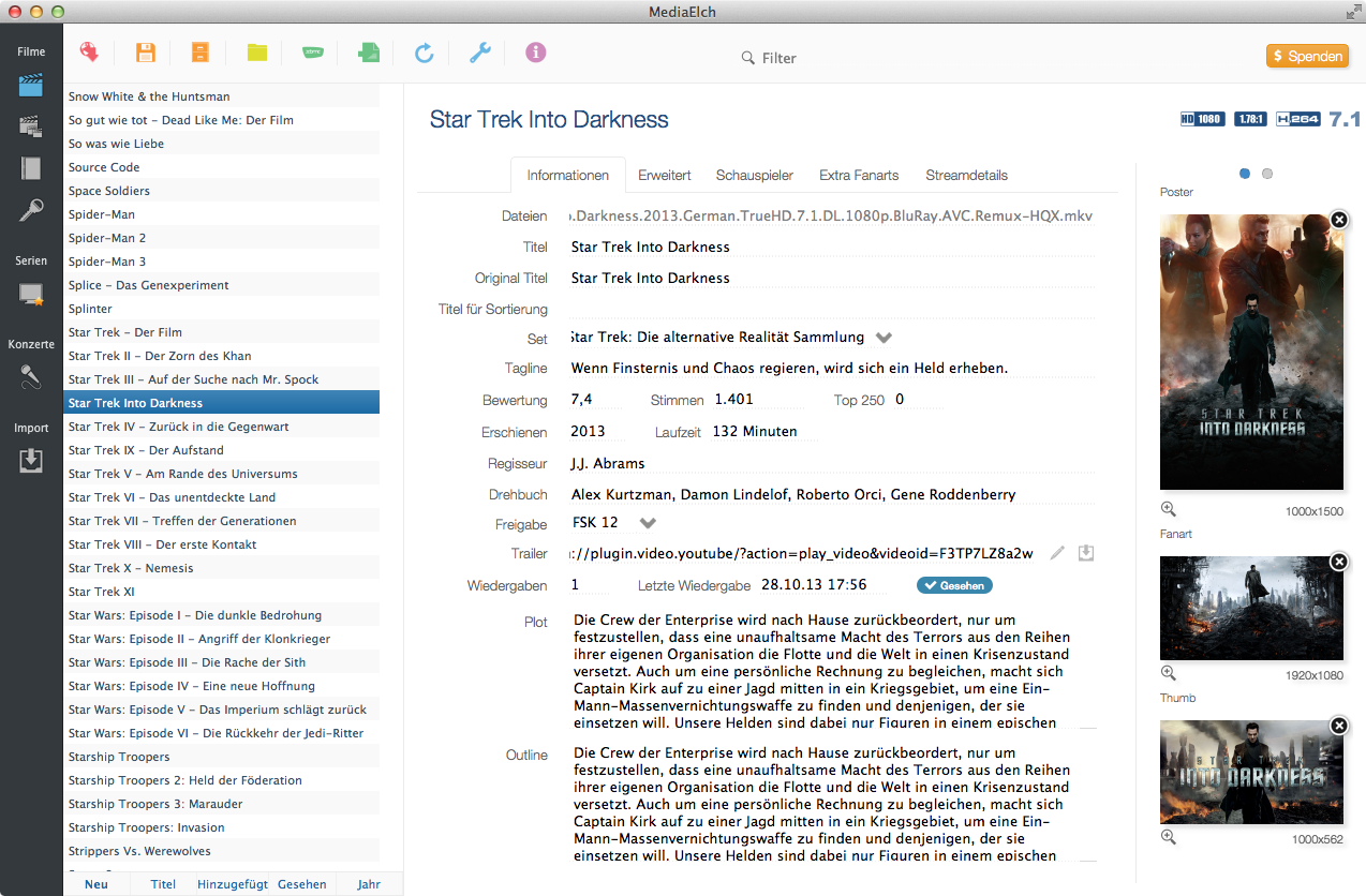 MediaElch is a program designed to manage your collection of favorite movies, documentaries, music tracks and other multimedia. It also adds information to movies etc. It downloads information from verified Internet sources (The Movie DB, TV DB, IMDB, Cinefacts, VideoBuster and OFDb). The application can load multimedia files such as AVI, MPG, MOV and FLV.