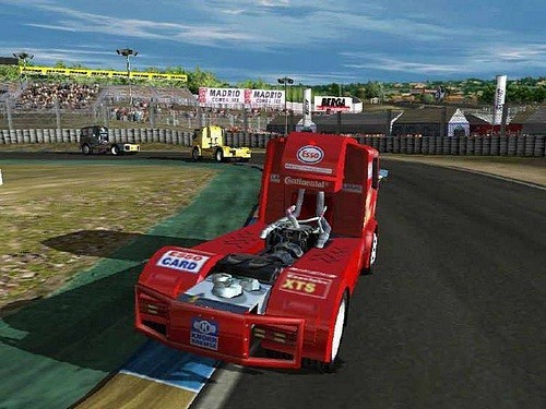 Do you sometimes hate the reckless drivers of heavy-duty trucks that without warning start overtaking their slower colleagues on a hill, while you're fighting it out in the left lane with a hundred and forty? Try it from the other side, and your view of professional drivers who have to safely transport computer components, southern fruit, luxury furniture, five kilos of heroin and twenty Afghan refugees across half of Europe will suddenly become much more tolerant. Driving such a multi-tonne vehicle is no mean feat, even in the absence of a trailer. Mercedes Benz Truck Racing features tractor-trailers without any cargo, but that doesn't make the situation any easier.