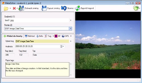 The MetaEditor application is used to change hidden data that are commonly included in digital photos, such as exposure time, aperture, author of the photo, etc... The application supports JPEG and TIFF formats and also batch processing for multiple photos simultaneously.