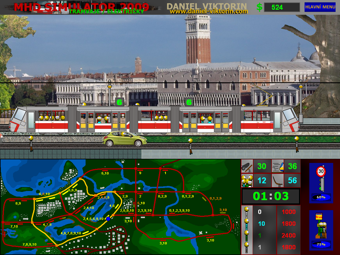 MHD Simulator 2009 is a new "indie" transport simulator, but this time, as in 2007, you will not play a bus driver, but a tram driver. You start out as a regular driver, with the expectation that you'll be exploring new lines, completing requirements to unlock those extra lines and earning money for new trams. The aim of the game is to reach the position of the most respected driver in the seaside Eco City. This means that you need to have permission from the transport company to run all the lines, and also to drive the most modern and expensive trams.