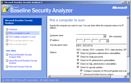 | download Microsoft Baseline Security Analyzer | |