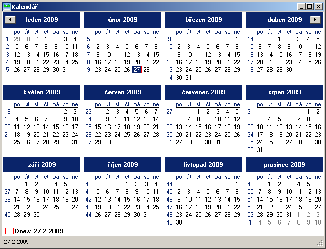 The main Calendar window contains a twelve-month view. The month and year names are clickable and can be modified in an intuitive (and mostly standard) way. The view does not have to start with January only.