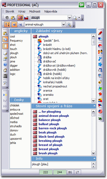 The Millennium dictionaries, now in version 7, are a universal tool for professional translations, manuals, handbooks, websites, from general texts to highly specialized ones, and not least for foreign language learning and teaching. It is a computer program which, together with extensive dictionary databases, allows very fast searches for foreign language equivalents in many fields of human activity. An undeniable advantage over book dictionaries is the lightning-fast search of hundreds of thousands of terms according to specific criteria. Long words and phrases can be searched for using a password or any text string (fulltext). The enormous and constantly expanding content of the databases is a guarantee of successfully finding the searched passwords, expressions or phrases. For example, the number of terms in the English-Czech dictionary has already exceeded 1.5 million, and the number of fields has exceeded 90.