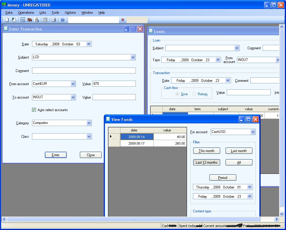 Money is a very powerful and feature-rich personal finance manager for people who want to know the source and destination of every penny ... Money is fully functional, with no trial period restrictions. During the trial period there will be some registration reminders. The data you enter in the database is not affected by the trial/registered mode.