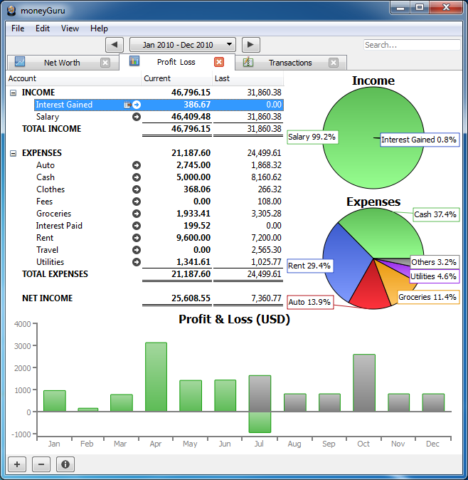 With moneyGuru you can easily assess your financial situation. moneyGuru has a very efficient navigation and editing system that allows you to clearly browse accounts, transactions and edit them. It supports the use of keyboard shortcuts.