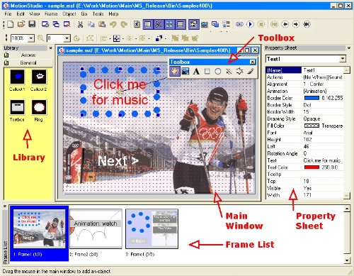 MotionStudio is a very capable multimedia program with many features for working with images, sound and animations to create standalone exe files. It is an ideal tool for creating slideshows, interactive and animated stories, educational programs, etc.