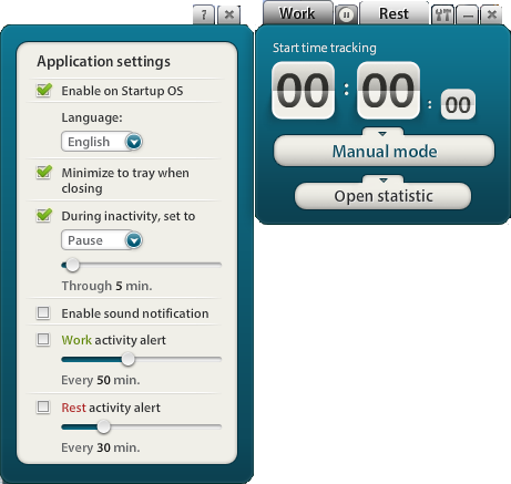 Motivate Clock is an app that tracks not only time spent on the PC, but also on various apps. It records the total rest time (when the user is not at the PC), and thus calculates the percentage ratio between work time and rest time. The calculations are automatically generated, manual settings are also possible.