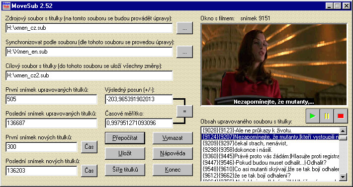 To synchronize subtitles, you just need to specify a minimum of input values, namely two. These are the frame numbers for which the first and last subtitle of the movie should be displayed. If you have no way of knowing this value, then you can specify the exact time to display the first and last subtitle.
