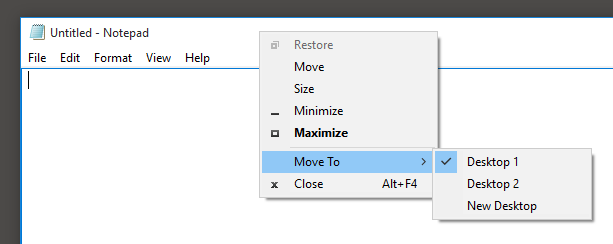 MoveToDesktop is a new feature of Windows 10. This feature allows you to move the active window from one desktop to another with a single click. The feature also allows you to create new workspaces and select between them when moving active windows.