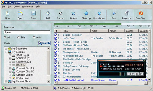 MP3 CD Converter is a simple utility for burning your compilations in .mp3 format. This program can burn music not only in the already announced format, but has a built-in converter with which you can convert .mp3 to the classic CD music format. This format does not lose its relevance even nowadays, when you don't have a new car radio with MP3 player, classic music CDs come in handy.