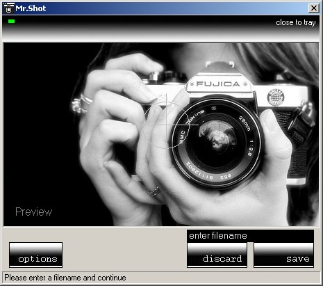 Mr.Shot allows you to capture images of your desktop, any active windows or parts of your screen. Just use keyboard shortcuts to capture and even choose your own keyboard shortcuts for the tasks. The program automatically starts when Windows starts and can be minimized to the tray.