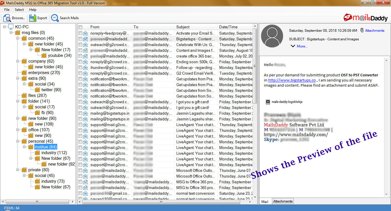 The MailsDaddy MSG to Office 365 migration tool keeps the folder and sub-folder structure intact when transferring emails to the Office 365 portal.