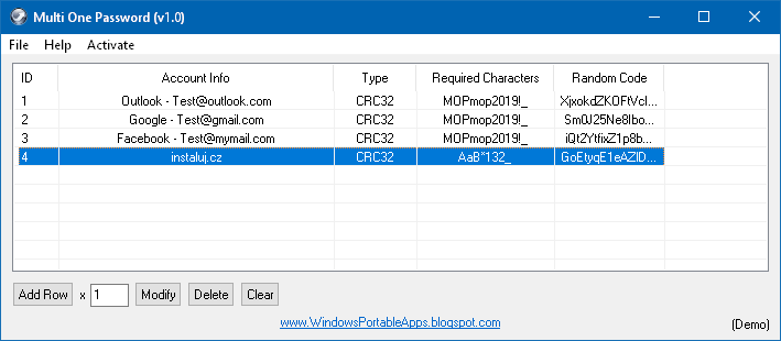 Multi One Password generates secure passwords for your Internet accounts according to the conditions you specify. It works by creating a prefix for each generated password in the "Required characters" field to meet the conditions, e.g. upper and lower case letter, number and character. Then you choose your password, it can be simple, you enter it in the "Unique password" field and in the bottom line "Final password" you will see the generated secure password based on Random code, the password is unique for each account and you do not have to remember it, then you can recall it by entering your simple password.