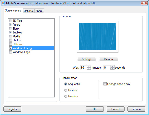 Multi-Screensaver is easy to set up. You can choose how often the screensavers rotate, and you can also specify which screensavers you want to use.