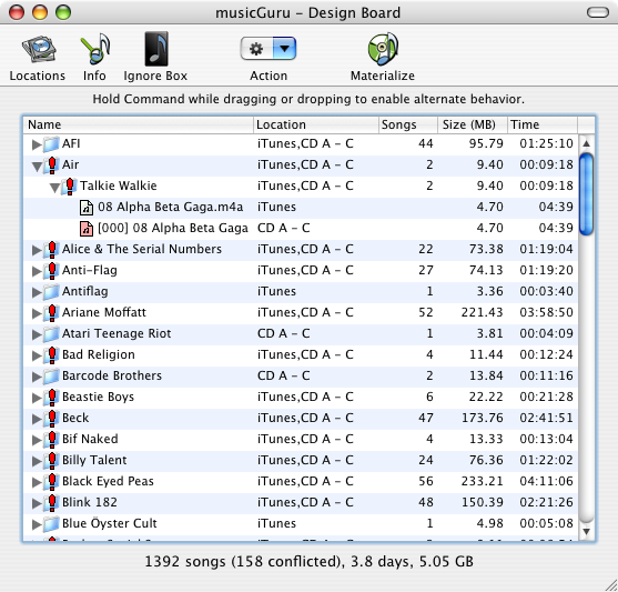 musicGuru is used to organize music. With the program you can rename, move, copy and record your music files to CD.