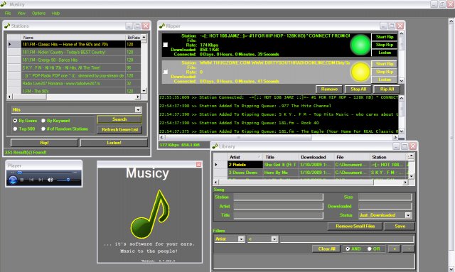 Musicy is a tool that allows you to search, play and download internet radio stations to mp3 files. It supports downloading multiple files at once and manages your newly downloaded music!
