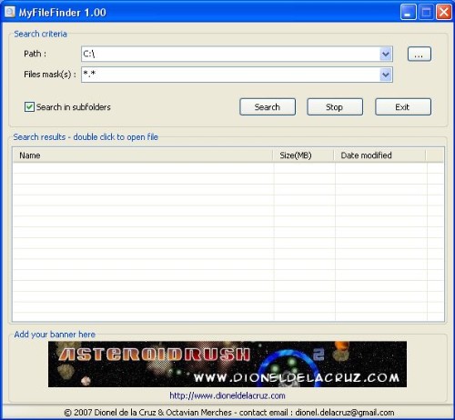 MyFileFinder is a useful tool to quickly and easily find the files you need on your computer. Just specify the location in which the program should search and set the filter. The program has an intuitive user interface.