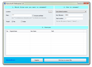 Mytoolsoft FileRenamer is a handy software that was created to rename multiple files at once in batch mode. It offers a friendly user interface and works fast.