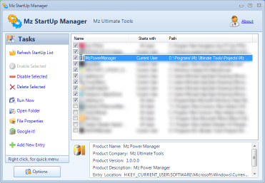 Mz StartUp Manager was created for easy control of programs after Windows starts. You can add new applications, disable, enable, or remove unwanted programs that automatically start when Windows starts.