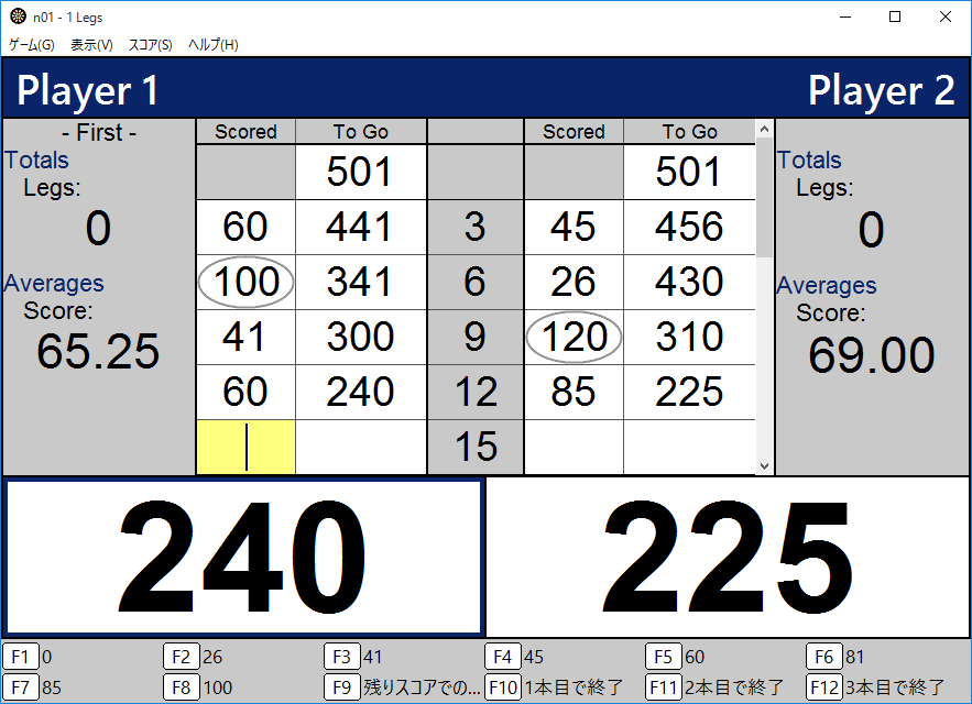 n01 was created to play the game of 501 with steel tip darts. You can enter the scores you have achieved in the games you have played into the program. It allows you to view the percentage of success in "Check Out" mode.