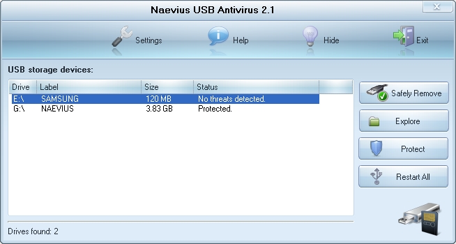 Naevius USB Antivirus is a powerful antivirus application for your USB that protects your computer from all kinds of malware residing on the USB drive connected to your system!