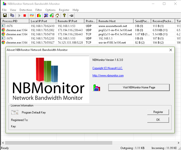 NBMonitor is dedicated to monitoring all incoming and outgoing network traffic and then shows you detailed information about the amount of data transferred through web browsers and local services in a clear interface.