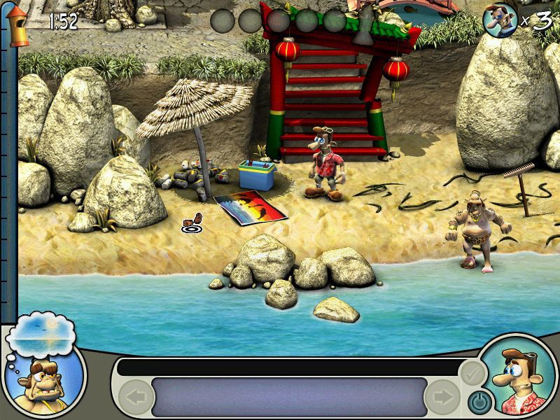 Neighbours From Hell 2: On Vacation is a new episode of the logical adventure game, in which you are trying to put on the blades of your neighbor. The protagonist Woody must repay his neighbour's arrogance and condescension while entertaining the audience. The game is made like a reality show, so everything is seemingly watched by the audience. In each mission, you will find several objects that can be used to set a trap for your neighbour. Don't hesitate to provoke your neighbour too.
