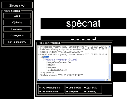 The program contains more than 170 English irregular verbs, their form in Past tense, Past participle and Czech translation. The program also contains a small number of regular verbs designed to increase the difficulty.