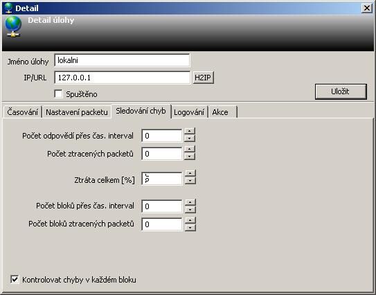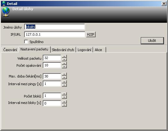 The pings sent can be grouped into blocks, for which thresholds can also be set. These are the number of blocks where pings exceeded a specified number or the number of blocks where packet loss occurred.