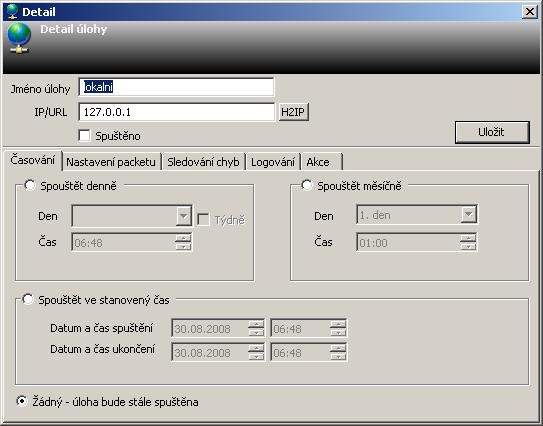 Any number of tasks can be created for monitoring, which then verify availability using the ping command.