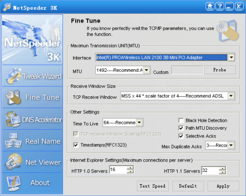 This program allows you to transfer data quickly and optimizes your Internet connection with the Tweak Wizard, opt. TCP/P parameters, DNS accelerators, etc.