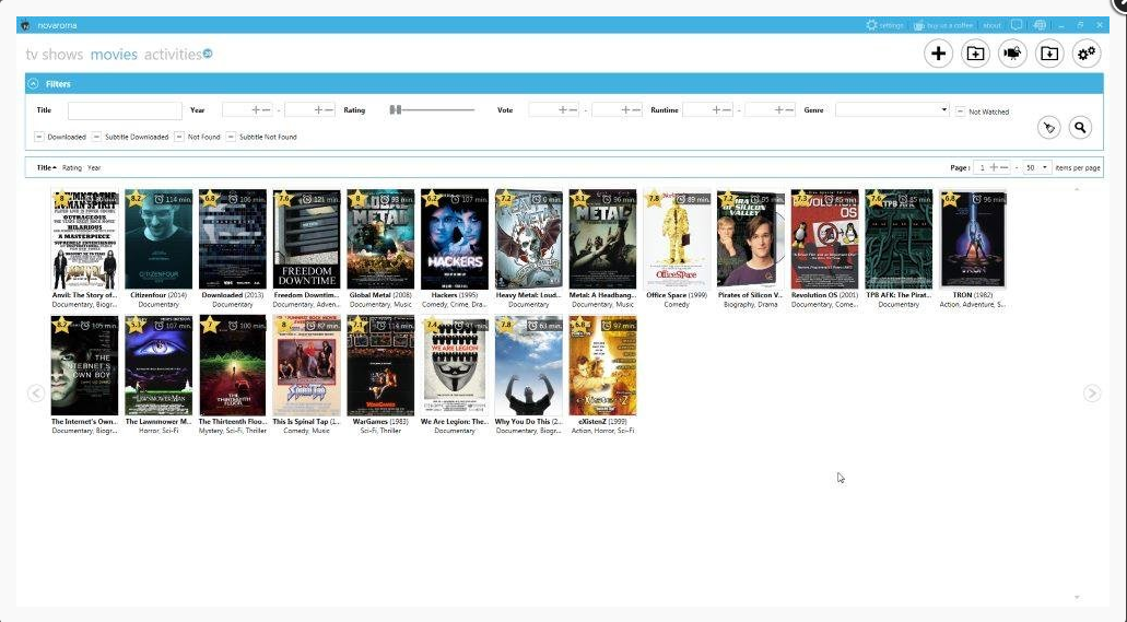 Novaroma is a tool that lets you search for and automatically download your favourite TV shows, movies and subtitles. The user sets the automatic mode, which then performs the operations itself. The user interface is simple, the database of downloaded files can be backed up.