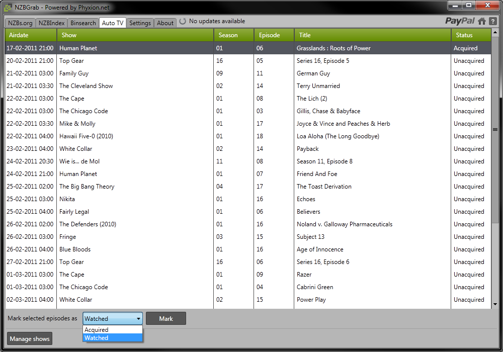 NZBGrab is a search application that supports watching new episodes of TV series. It allows you to search for NZB files on the most popular NBZ search networks and automatically download them.