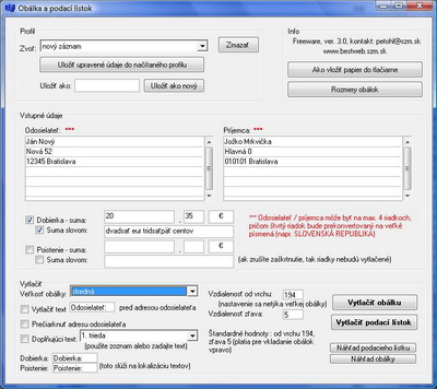 Pošta a kancelář 5.4Printing of envelopes and submission slips | |