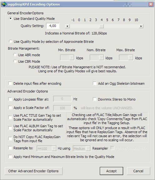 OggdropXPd is a free and easy-to-use software for converting audio files to Ogg Vorbis format. It supports a wide range of input formats, including WAV, APE, FLAC, PAC and OFR.
