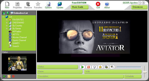 OnLineLive allows you to watch Internet TV and listen to Internet radio, offering many stations from around the world. It does not require special equipment - Online TV Player supports Windows Media Player, you can set any size of the program window. OnLineLive represents the ultimate in search effort and the most extensive selection of stations.
