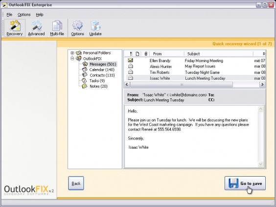 OutlookFIX recovers all data including emails, attachments, contacts, calendar, tasks and notes.