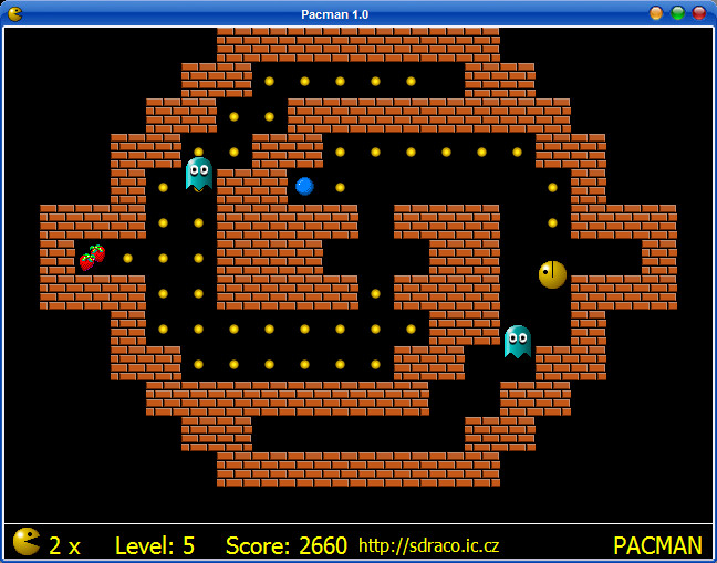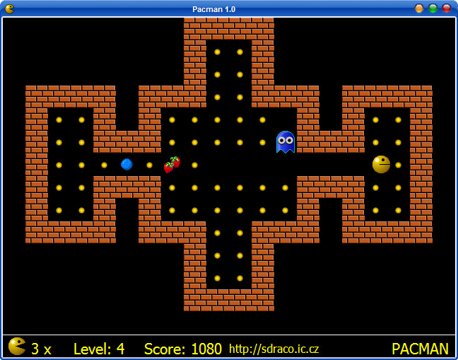 Pacman is a modification of Namco's original Pacman game. In this version your goal is to pass all the levels and collect as many yellow balls as possible.