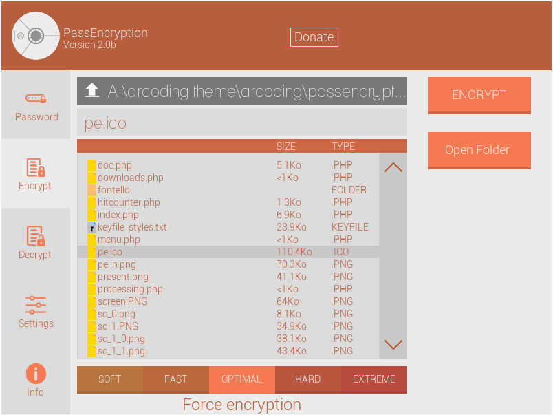 Passencryption is a tool for encrypting and decrypting files and generating passwords. It uses the RSA encryption method to generate unique passwords. A clear user interface guides you how to encrypt your files easily.