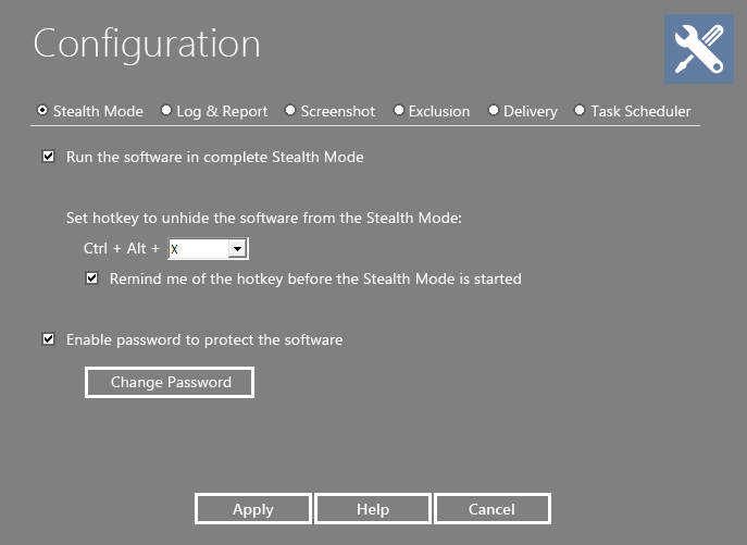 PC Screen Spy Monitor 2018 is a program that records what is happening on your screen. It records a screenshot every X seconds, you set the time without the program being detected as it runs hidden. You can receive reports on any device remotely via emails or ftp server. Of course, you can also check directly on the computer being monitored. The program saves images to JPEG files with defined cavity from 20% to save disk space to 100% for high quality screenshots.